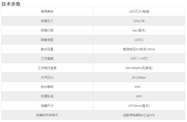 2.人性化的键面布局,按键表面是采用冲压注胶工艺,以便更好的操作,长久的使用也不会使字符脱落。按键表面字符和图案可以根据客户要求定制