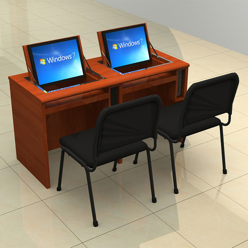 12. Each desk is equipped with an intelligent power switch for the computer tower (functions: power on/off/restart, two USB ports, one data port, and one charging port). The power on/off or USB insertion is directly operated on the desk for convenience and speed. For soundproof rooms, a dedicated professional earphone bracket can be provided.