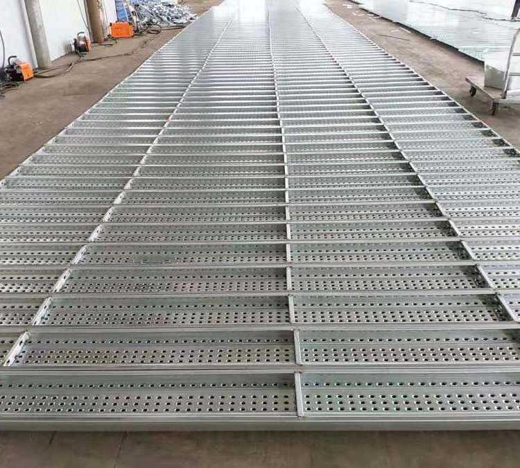 The holes are evenly spaced, the shape is standardized, and the appearance is aesthetically pleasing. The platform is equipped with two grooves in the middle, enhancing the compressive strength of the steel platform. Even under pressure and bending, it can return to its original shape after pressure is removed, making the steel platform less prone to deformation. It is anti-slip, anti-sand accumulation, fire-resistant, and has a high rate of reuse.