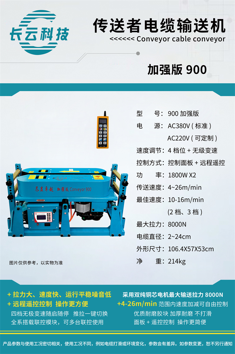 ●This machine features a compact and rational structure, excellent performance, smooth operation, low noise, fast conveying speed, and simple maintenance. It is suitable for long-distance cable laying, such as bridge cable, cable in subway tunnels, instrument cable, and electrical control line installation.