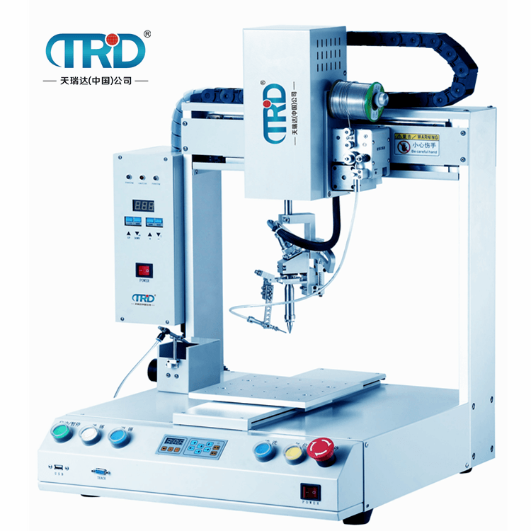 TH-4331自动焊锡机可对各种工件进行高速拖焊,点焊,斜线焊接等。解决了人工重复性焊接动作出现的焊点不均匀、虚焊等现象。我们的优势是焊点一致性好,品质稳定。自动焊锡机操作简单,生产效率高、焊接质量好、环保又节能、初学者也能达到熟练工人的焊接效果。本机采用简易快速地输入焊锡程序,其软件并具有强大的编辑功能,可轻易、快速的完成程序教导。