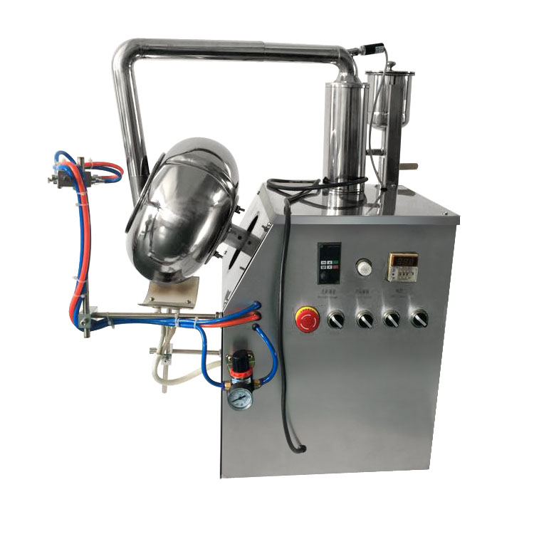 To ensure the chips are coated evenly with a crystalline film on their surface as quickly as possible, and to achieve polishing, it is necessary to spray the sugar syrup solution into the pot with manual operations in stages.+Mixed slurry pieces are rotated clockwise in the pot, causing the sugar-coated tablets to roll and slide, frictionally grinding to ensure even distribution across all chips. This results in qualified coated tablets. The machine ensures a stable linear speed to form a good logistics curve for the tablets in the pot, meeting the requirements for uniform thickness of the sugar coating, bright coloration, and no occurrence of speckles.