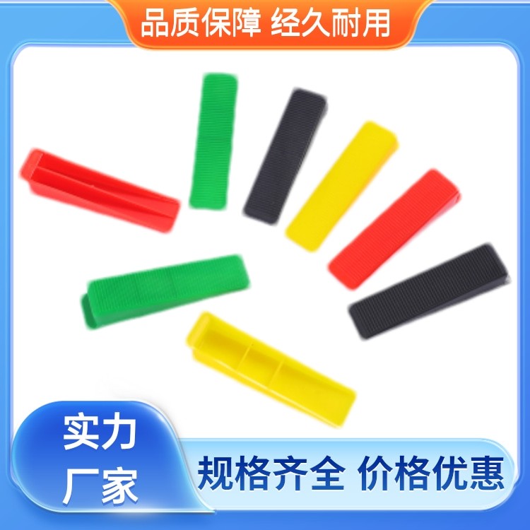 Composed of a push clamp, a wedge, and a base, the push clamp and wedge are reusable, while the base is not. Common base sizes on the market include 1mm, 1.5mm, 2mm, 2.5mm, and 3mm. The difference in the base is mainly based on the width of the tile gap required by the customer.