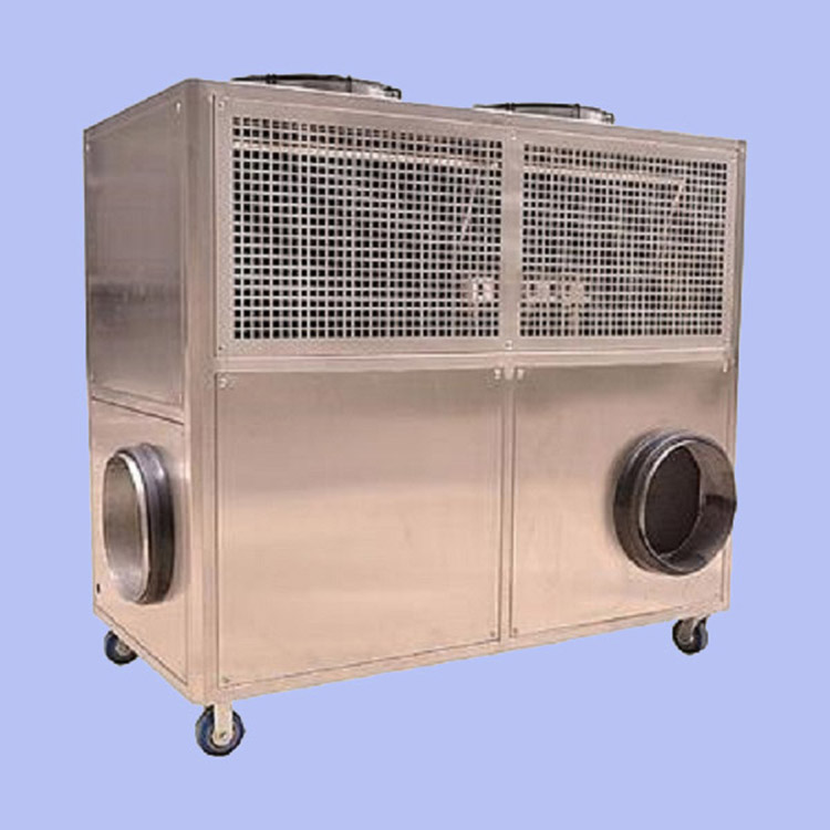 The cold air machine is surrounded by a honeycomb-like wet pad made of special materials, which has a large surface area. It is continuously humidified through a water circulation system. Inside the wet pad cold air machine, an efficient, low-noise, energy-saving fan is installed. When the fan operates, it creates a negative pressure in the wet pad cold air machine, drawing air from outside through the porous, moist wet pad into the machine. As the water on the wet pad evaporates, it absorbs heat, thereby cooling the air passing through the wet pad. Simultaneously, the evaporation of water from the wet pad into the air passing through it increases the humidity of the air, making the wet pad cold air machine capable of both cooling and humidifying.