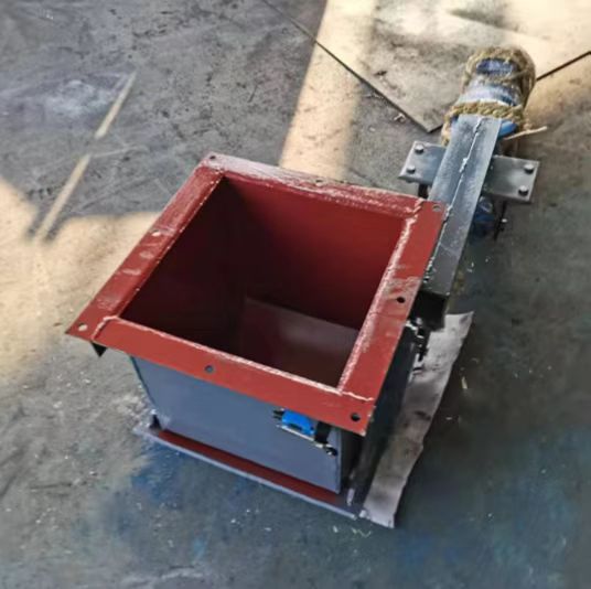 The gate valve consists of components such as the main body, wing-shaped gate plate, shaft, gears, sealing pairs, and actuator. A hand or actuator pushes the lever, causing the gears to rotate the wing-shaped gate plate around the shaft, opening both plates to the sides, allowing the material to fall. After the receiving device is fully loaded, the actuator moves the lever again to reset the wing-shaped gate plate, closing off the falling material.