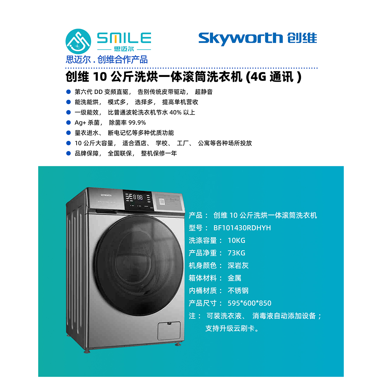 Simair-Skyworth 10KG Fully Automatic Combination Washing and Drying Drum Washing Machine (Model: 4G)