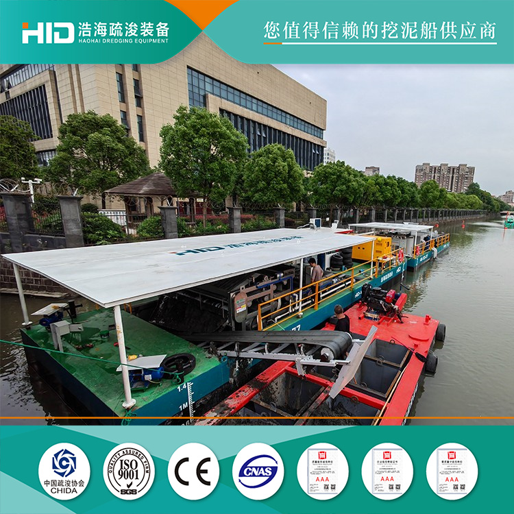 Shandong Haohai has invested heavily in human, material, and financial resources, innovatively developing a comprehensive solution specifically for water surface environmental cleanup in urban river canals. All processes are completed on the water, with minimal impact on the overall urban environment and residents' lives. Regular dredging operations are required to effectively enhance the overall image of the urban river canals and improve water quality. Shandong Haohai has received praise and recognition from clients and leaders of the Jiangbei District Water Conservancy Bureau of Ningbo City, and has been designated as a long-term strategic cooperation partner for environmental dredging equipment.