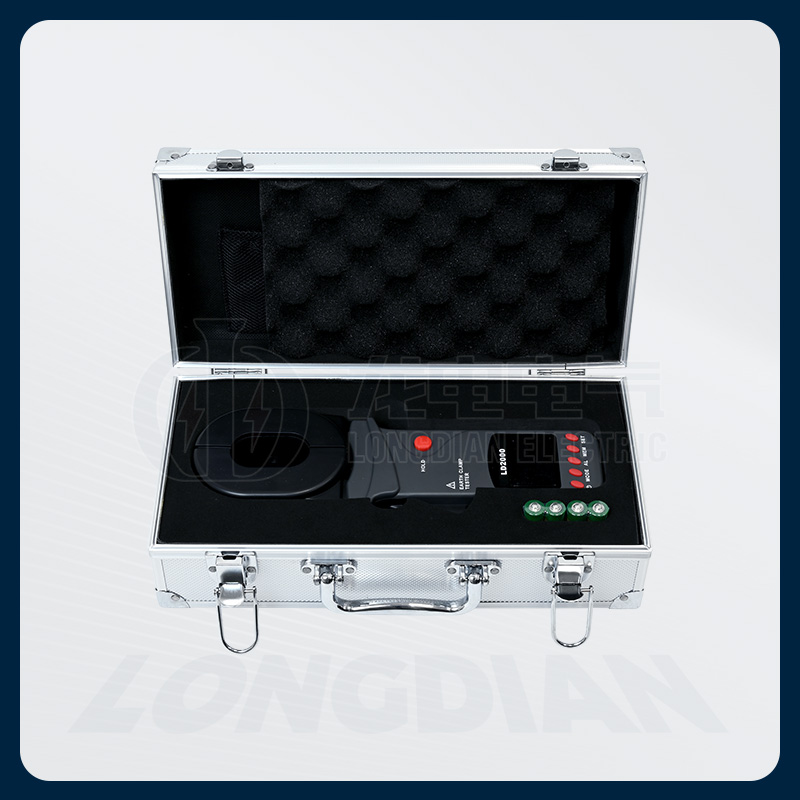 Clamp-on ground resistance tester, also known as loop resistance tester, is used for testing ground resistance. The LD-2000 Clamp-on Ground Resistance Tester features a brand new black luxury screen design, simultaneous display of resistance and current, along with data storage, data review, alarm, and automatic shutdown functions. The entire unit is aesthetically pleasing, with a wide measurement range, high resolution, easy operation, and convenient portability. It is accurate, reliable, with stable performance and strong anti-interference ability. Additionally, it has shockproof, dustproof, and moisture-proof structures, making it an indispensable instrument commonly used in telecommunications, electricity, meteorology, data centers, oil fields, electrical and mechanical installation and maintenance, and industrial enterprises that use electricity as industrial power or energy. It is suitable for measuring ground resistance in various telecommunications, electricity, meteorology, data centers, oil fields, power distribution lines, transmission towers, gas stations, factory grounding networks, lightning rods, and more.