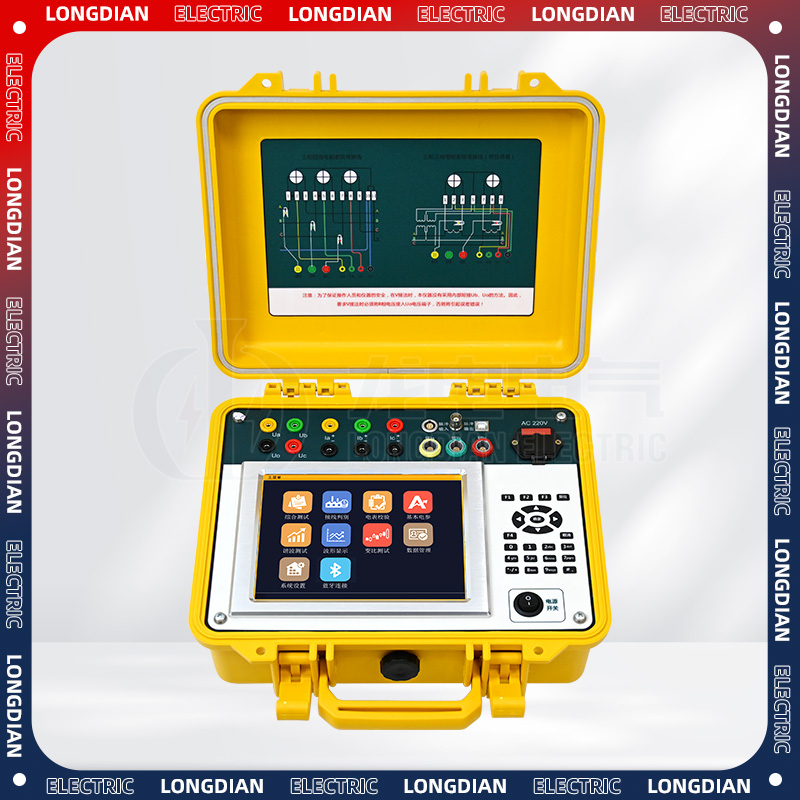 The LD-308 three-phase energy meter field calibration instrument features a large, color LCD display, a full Chinese graphic operation interface with Chinese character prompts, and a liquid crystal display interface for multi-parameter display. Its user-friendly interface, vector diagram display, and wiring judgment provide a reliable basis for checking circuit correctness. The instrument uses a full-touch conductive silicone keyboard for operation, offering a good tactile experience and ease of learning. It is equipped with a large-capacity non-volatile data storage memory, allowing the retention of on-site calibration data. It can store up to 1000 sets of on-site calibration results and provides backend microcomputer management software for uploading results to computers, enabling computerized management.