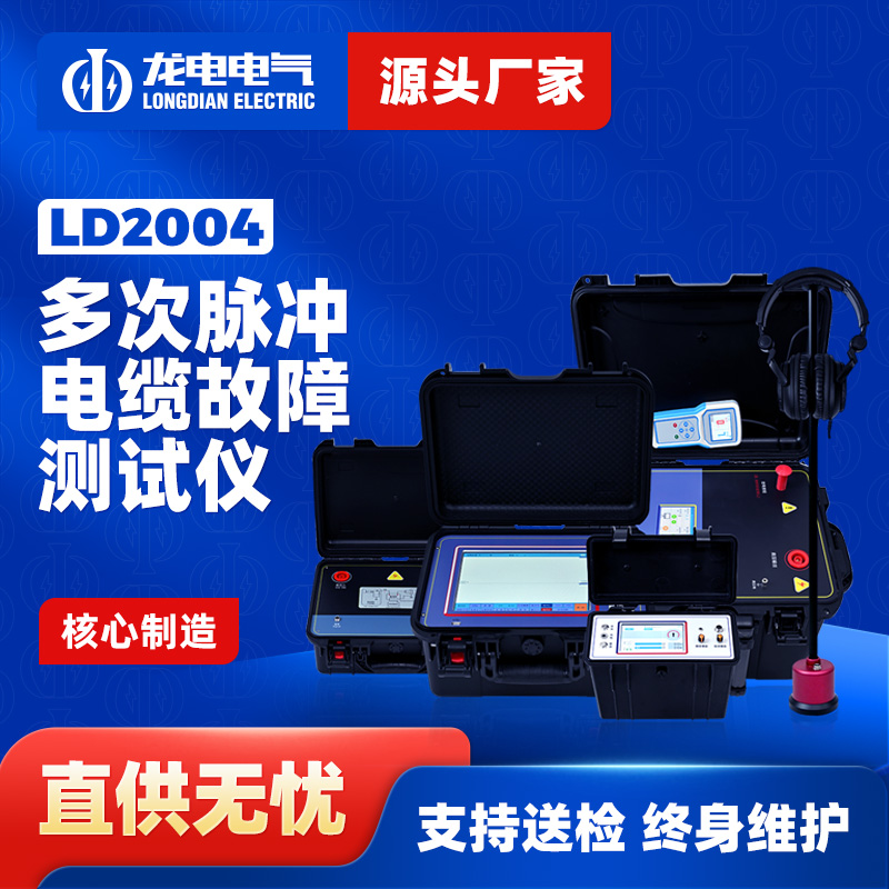 LD-2004 Multipulse Cable Fault Tester, in accordance with the People's Republic of China's electrical industry standard "DL/T849.1-3-2004" for General Technical Specifications of Special Test Instruments for Power Equipment, and considering market demands, developed over a decade of field experience. It employs new technologies such as multiple arc reflection, low-voltage pulse, pulse current, and attenuation methods. The LD-2004 Multipulse Cable Fault Tester integrates distance measurement and path tracing, housed in a compact and delicate PP plastic case, easy to carry. The user interface is friendly, allowing even non-specialists to quickly become familiar with and use it, efficiently and accurately completing cable fault testing tasks.