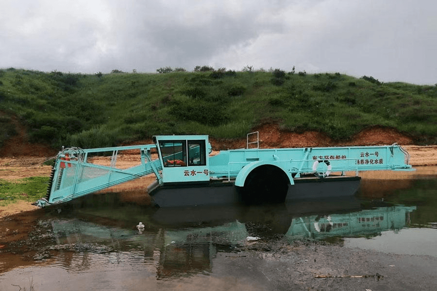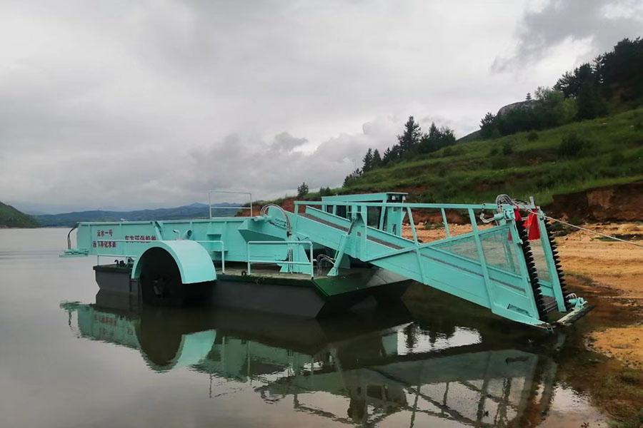 3. The vessel is equipped with one set of bottom transverse knives, one set of side knives (wheels) on each side, a set of mechanical collection wheels, capable of harvesting aquatic vegetation and clearing floating debris from the water surface.