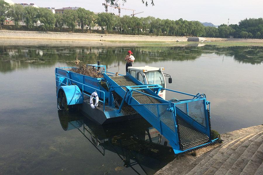 1. This vessel efficiently harvests aquatic weeds, requiring only one person in the cabin to handle operations such as gathering, collecting, water filtering, conveying, storing, unloading, and navigation. It boasts powerful weed-harvesting capabilities and also serves as a water cleaner, capable of effortlessly retrieving various floating debris.