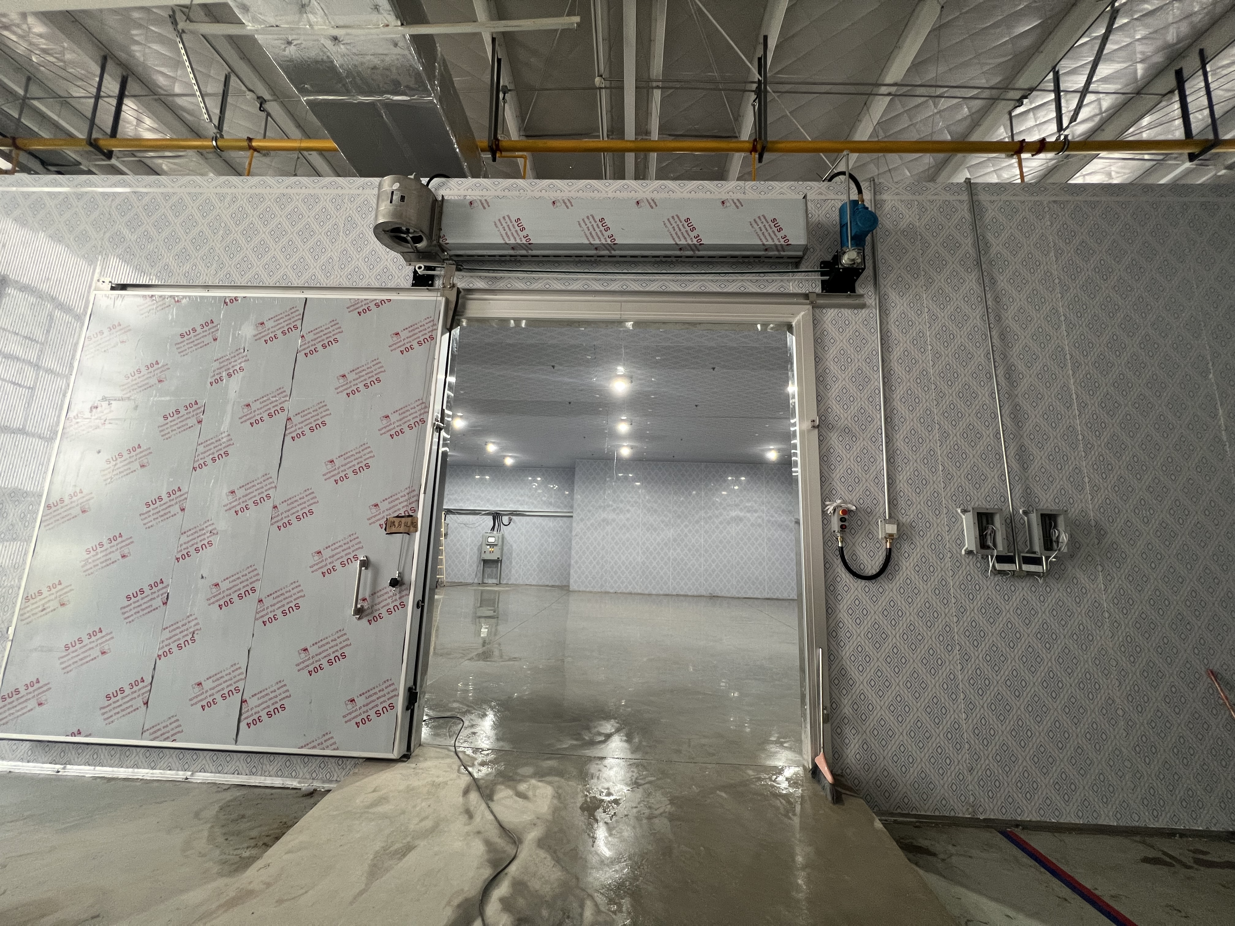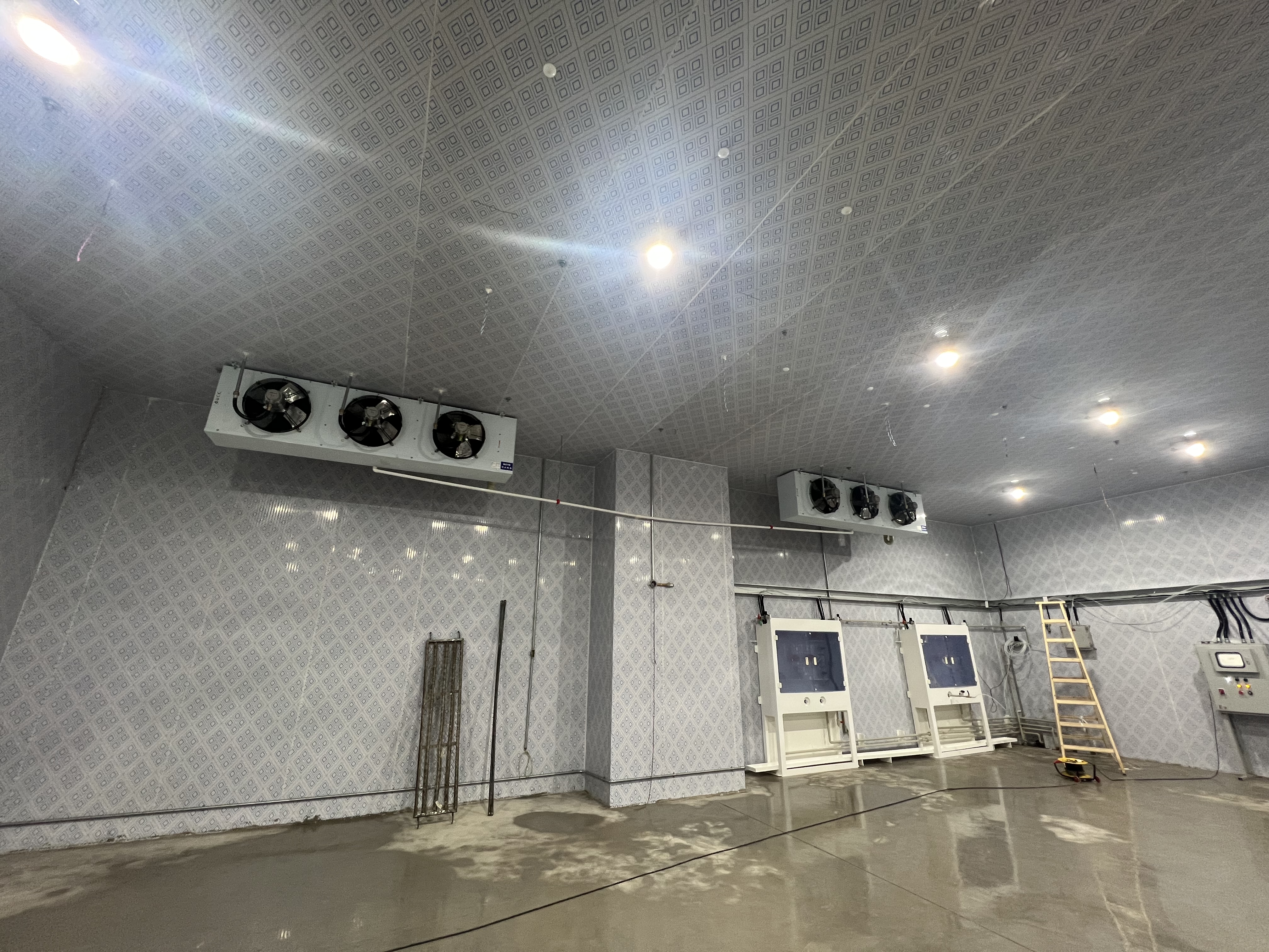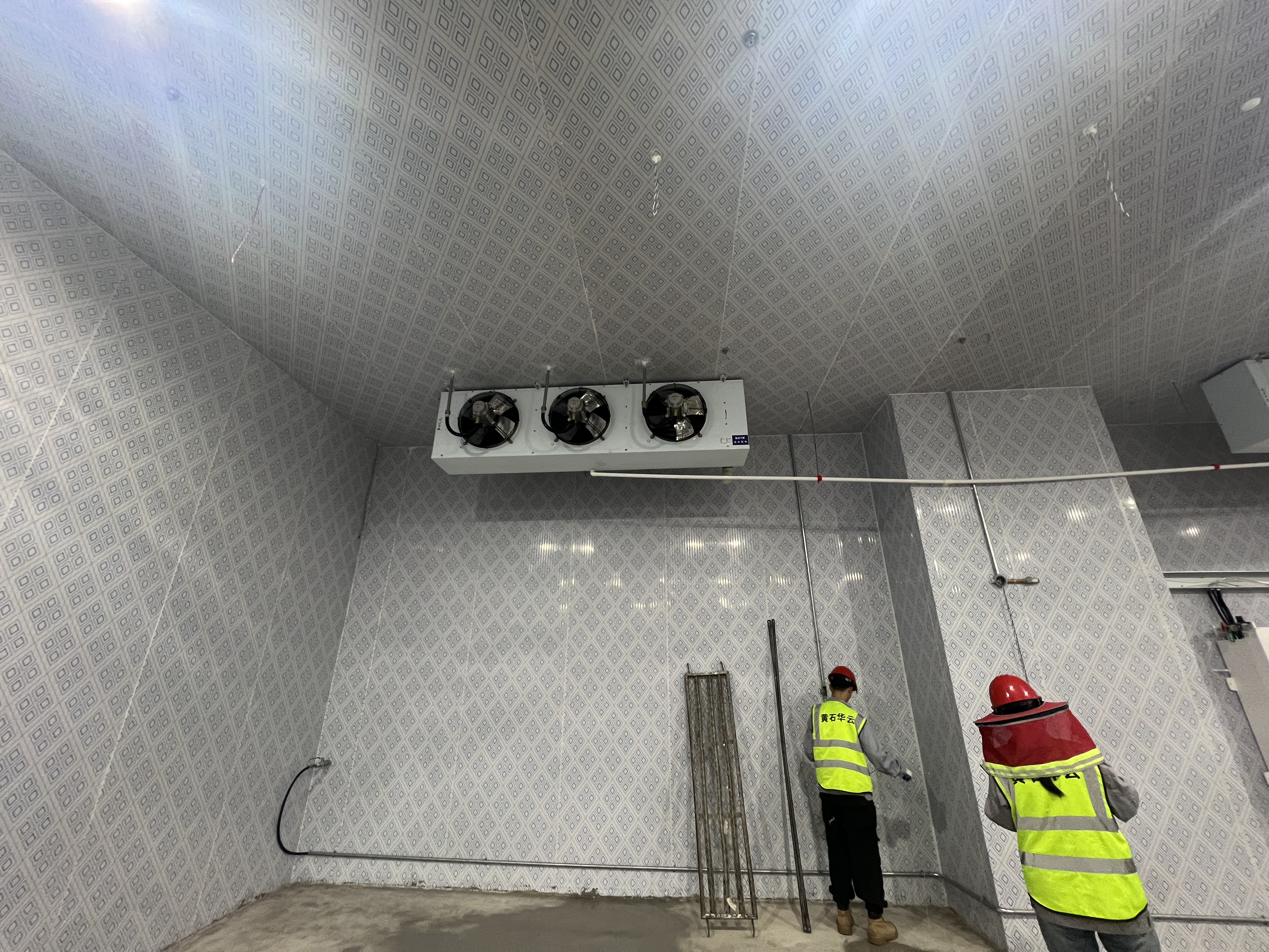Construction of warehouses with cooling facilities to achieve suitable humidity and low-temperature conditions, including the procurement of various cold storage equipment, accessories, and consumables, racking assembly, indoor and outdoor unit hoisting, pipeline installation and insulation, drainage pipe setup, wiring and connection, control system installation, power cable connection for indoor and outdoor units, and system debugging process.