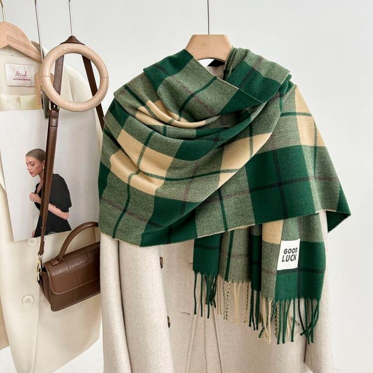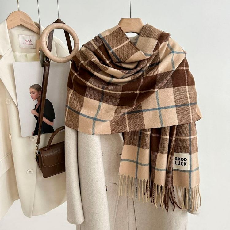 Export Japanese and Korean brand scarves, customizable, woven plaid, unisex, checkered stripes, factory direct supply