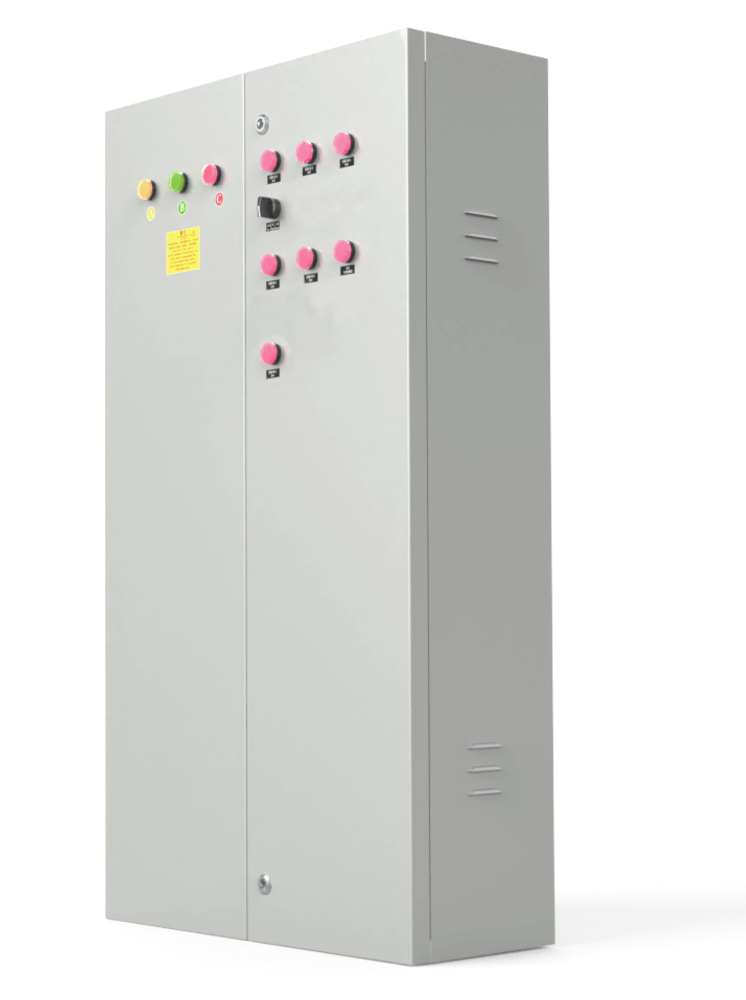 本产品采用户内壳体,总荷载功率130KW,可接39路单相用电设备(如显示屏回路、空调回路、风机回路);可实现过流、短路保护,分步逐级延时上电。可实现手动上断电、多功能卡远程自动上电、关电功能,标配断路器选用德力西产品,接触器选用施耐德产品。多功能卡供电选用明纬高可靠工业级产品,确保系统供电稳定。