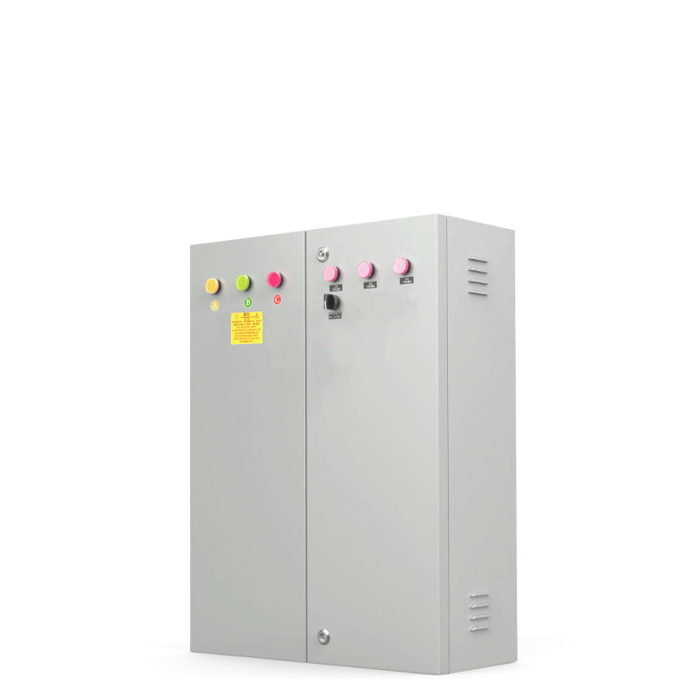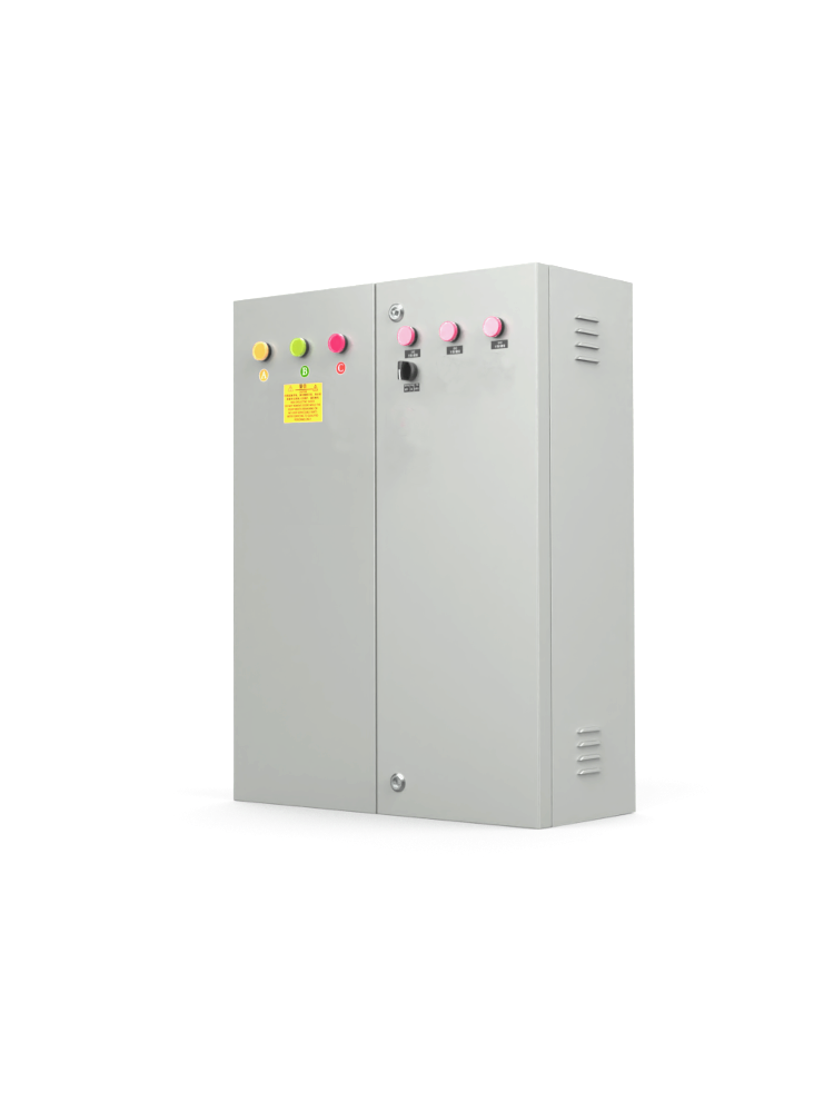 This product features an indoor shell, with a total load power of 60KW, capable of connecting 18 single-phase electrical equipment lines (such as display circuit, air conditioning circuit, fan circuit); it offers overcurrent and short-circuit protection, with step-by-step and graded delayed power-on. It can be manually switched on/off, scheduled for automatic power-on, and has an off function. The standard circuit breaker is a Delixi product, while the contactor is a Schneider product. Ensures stable system power supply.。