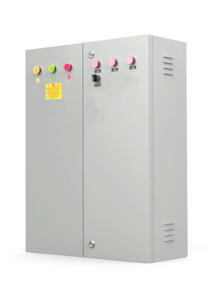 This product features an indoor housing with a total load power of 60KW, capable of connecting 18 single-phase electrical equipment lines (such as display circuit, air conditioning circuit, fan circuit); it provides overcurrent and short-circuit protection with step-by-step, graded delay in power-on. It supports manual power on/off, remote automatic power on/off with a multi-functional card, and power off functionality. The standard circuit breaker is a Delixi product, while the contactor is a Schneider product. The multi-functional card power supply utilizes Mingwei's high-reliability industrial-grade products to ensure stable system power supply.