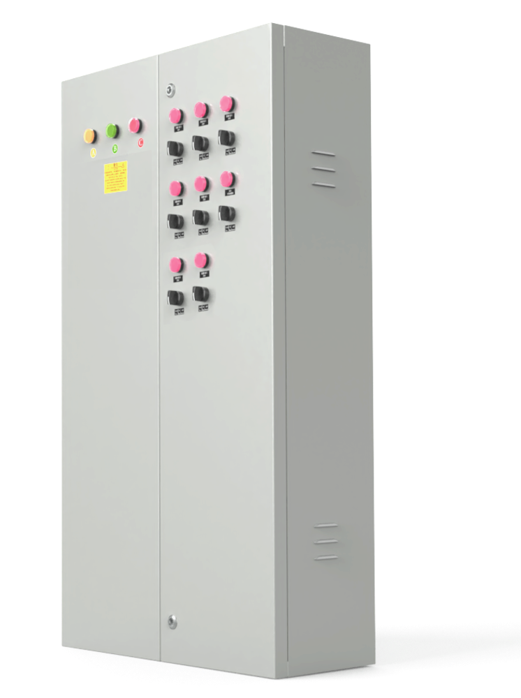 This product features an indoor shell, with a total load power of 150KW, capable of connecting 45 single-phase electrical equipment (such as display circuit, air conditioning circuit, fan circuit); it offers overcurrent and short-circuit protection, manual power-on/off, and PLC power-on/off functionalities. The standard circuit breaker is a Delixi product, and the contactor is a Schneider product. PLC power supply utilizes a high-reliability industrial-grade product from Mingwei, and the controller is from Omron/IPMS/Siemens PLC products. It has RS232/TCP/IP communication capabilities, allowing for connection to a central control system for integrated control; it aids in rapid and convenient external data monitoring of LED display systems and remote intelligent power control. The system is built with a B/S architecture, compatible with multiple platforms and operating systems including Windows, Linux, Android, HarmonyOS, and麒麟, etc.