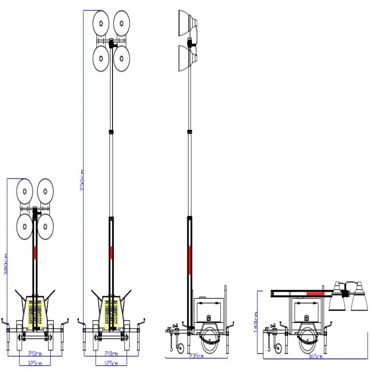 Mobile lighting tower with 4 x 1000W lamps