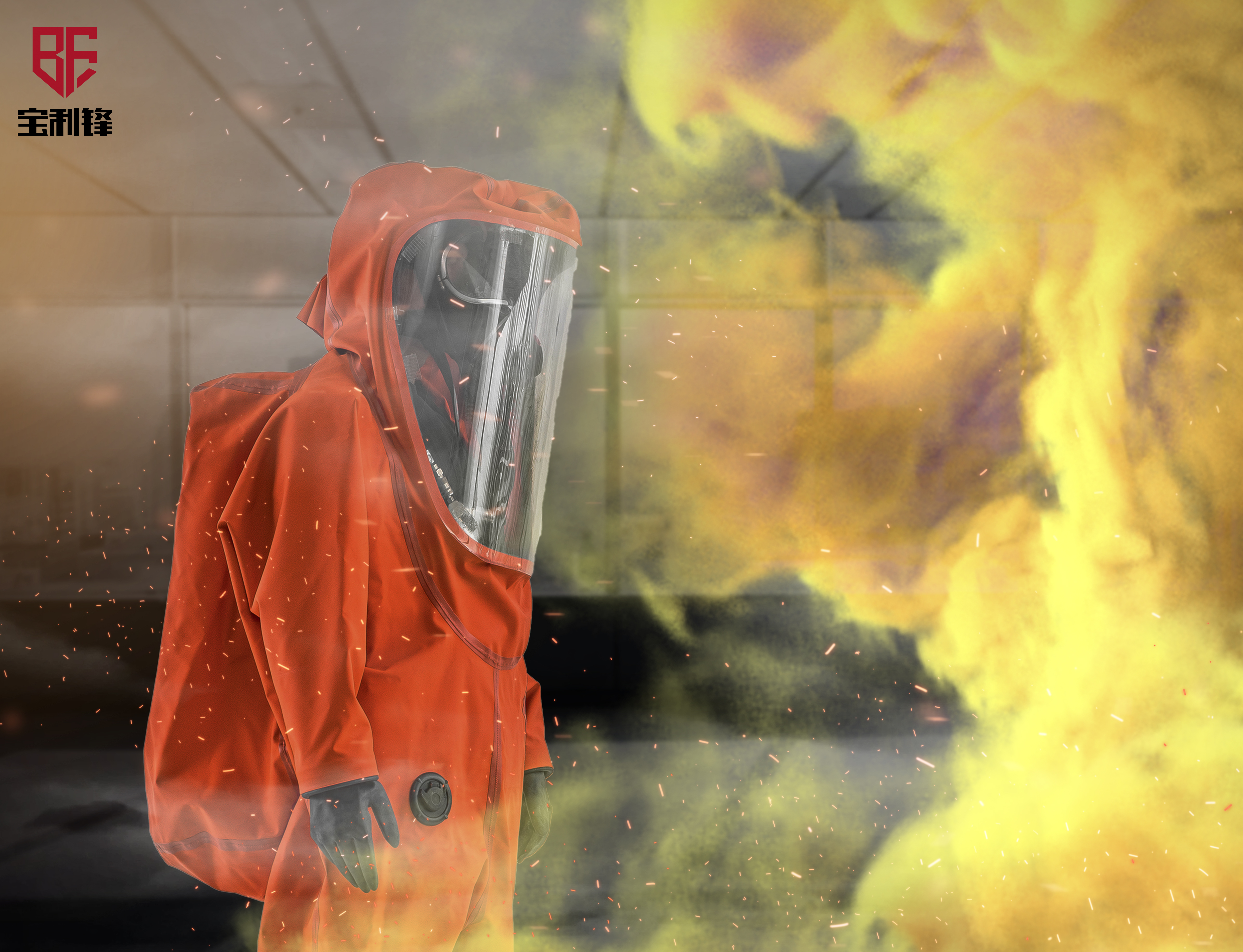 Gas-tight, heavy-duty chemical protective clothing for handling incidents involving toxic and hazardous chemicals in gaseous, liquid, solid, aerosol, particulate, viral, and bacterial forms, as well as for contact with hazardous chemicals and toxins. It effectively protects against toxic and hazardous chemicals as specified in XF770-2008 "Firefighter Chemical Protective Clothing." The main fabric is made of flame-retardant and chemical-resistant rubber, equipped with an integrated large vision dual-layer face shield, integrated rubber chemical-resistant gloves, integrated chemical-resistant rubber boots, air breathing apparatus backpack. Exhaust valve, distribution valve, weighted belt.