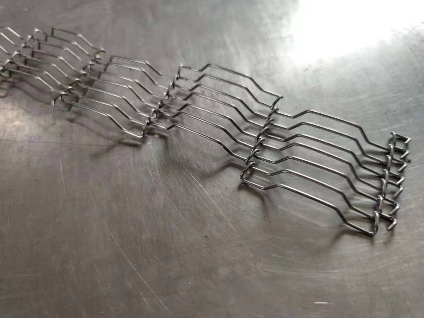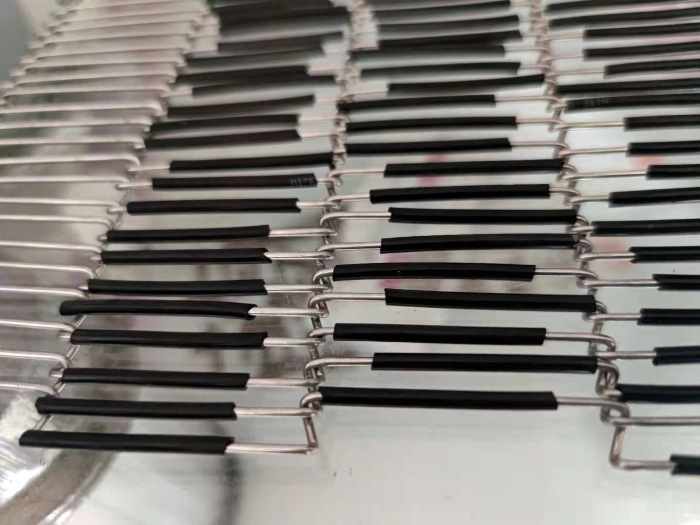 太阳能光伏网带: 太阳能光伏网带广泛应用在硅晶硅片光源炉,烘干炉,烧结炉的产品输送, 材料主要有310S,314,Cr20Ni80; 编织方式采用平衡型,单双轨输送中,网带平面焊接顶针,减少硅晶片和网带的接触面,保证了设备中组件的安全,我公司提供多种顶针支撑规格供您选择,保证硅片的安全输送。 其中部分光伏网带顶针经过纳米涂层处理后,大大的提高了使用寿命。