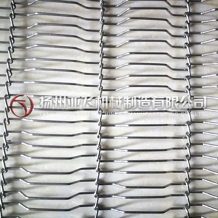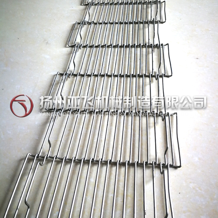 食品制 药网带: 网带采用不锈钢材质,SUS304,SUS316等,耐腐蚀,耐酸耐碱,耐高温600度以上,编织形式有链条网带,平衡型,人字形,马蹄形,链板式,网带螺距均匀,穿条波浪设计,延伸率小,主要用于食品,蔬果,药材的烘干,杀菌,清洗。采用滚筒链轮驱动,运行平稳。