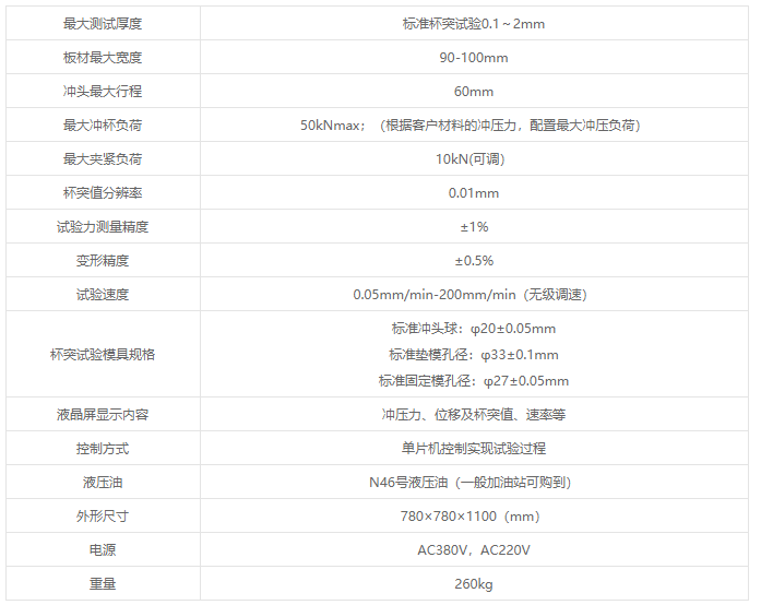 The GBS-50 machine features a novel and elegant design, adhering to human engineering principles. It is a precise equipment for testing the process performance of metal thin plates and strips. It can perform the GB/T4156-2007 "Erligson cup indentation test method for metallic materials, thin plates and thin strips" and meets the requirements of JJG 583-2010 and JB/T7408-94. It also adopts the ASTME643-2008 standard to inspect the plastic deformation properties of metal thin plates and strips during the testing process.