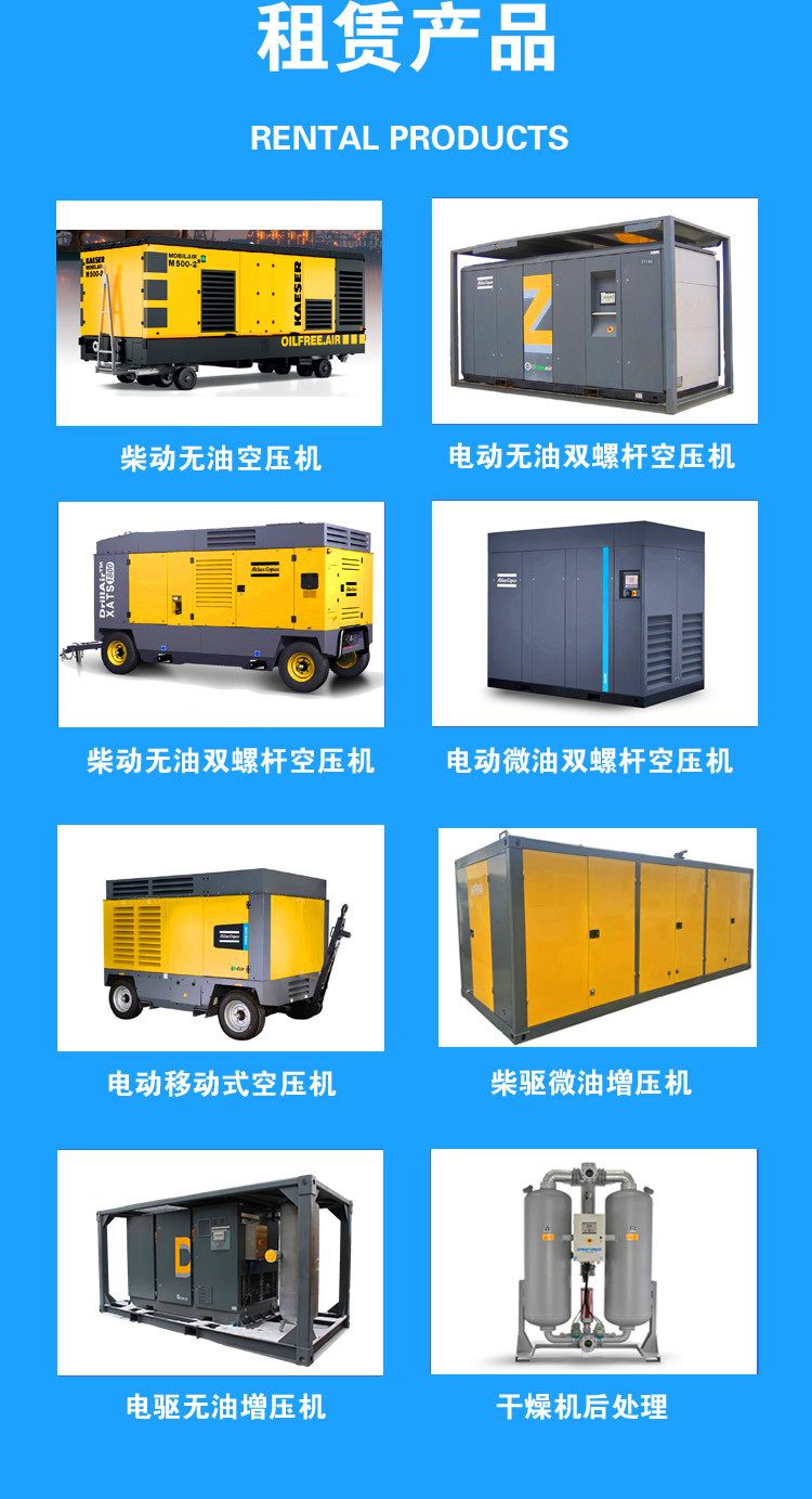 Our company offers professional air compressor rental services, not just rental equipment, but also expert technical support, more convenient and reliable all-in-one service, and more value creation for superior and faster rental services, and a commitment to customer service guarantees.