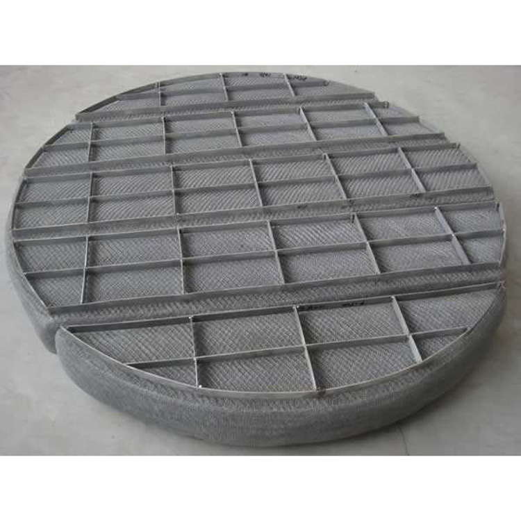 除沫器用于分离塔中气体夹带的液滴,以保证有传质效率,降低有价值的物料损失和改善塔后压缩机的操作,降低含水量,延长压缩机的寿命,一般多在塔顶设置除沫器。可有效去除3--5um的雾滴,塔盘间若设置除沫器,不仅可保证塔盘的传质效率,还可以减小板间距。所以丝网除沫器主要用于气液分离。亦可在空气过滤器上用于气体分离。