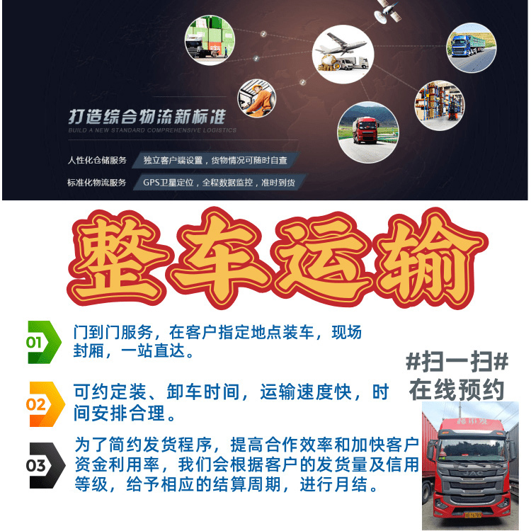 | 服务类型 | 整车运输,回程车运输,零担运输 | |