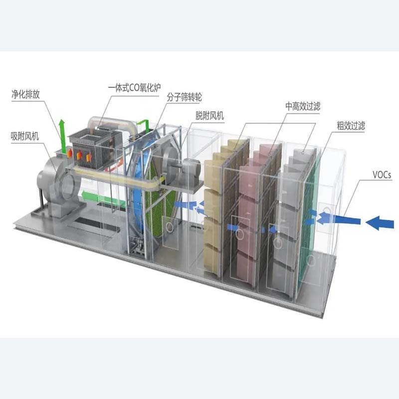 2. Zeolite wheel adsorption of VOCs reduces pressure drop, significantly cutting down on electrical energy consumption.