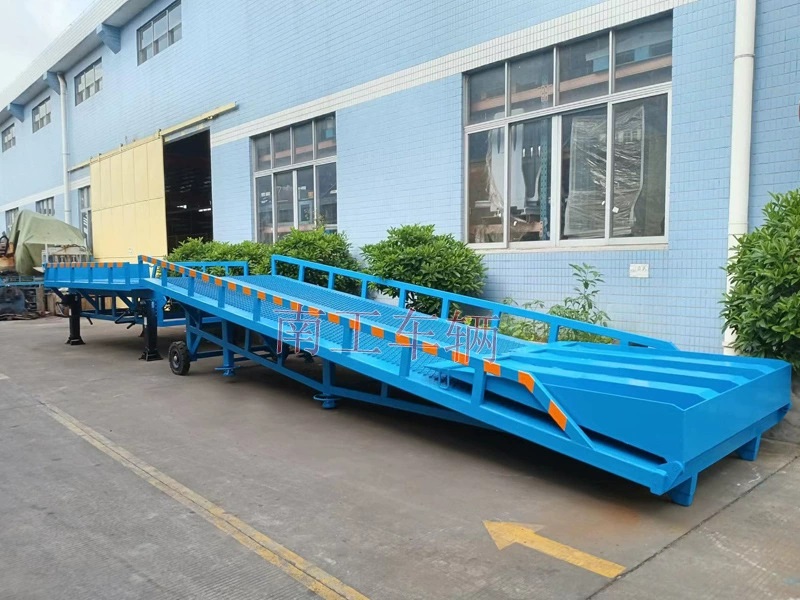 10-ton split-type mobile boarding bridge for southwork vehicles, non-standard customized. Split-type boarding bridge, with the platform and bridge body as two separate independent facilities, convenient for transportation, high load capacity, practical and convenient, and smooth loading and unloading.