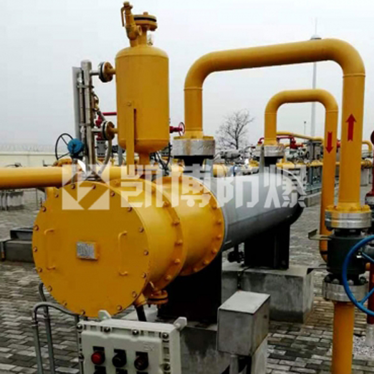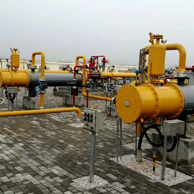 加热器是涉及一种加热压缩的装置。它包括箱体、水槽、进、出口、管道、进水口、加热器,箱体内设有水槽,水槽上部设有进水口,管道的两端口分别连接进、出口,管道设置在水槽内,水槽内还设有加热器。该加热器设置了两个接口,分别连接气罐或减压阀,气罐内的高压流经本加热器,在本加热器中被预热至50~60℃,使其通过减压阀时,不会使减压阀冻结;由于其在管道中被加热,压力会进一步增高。