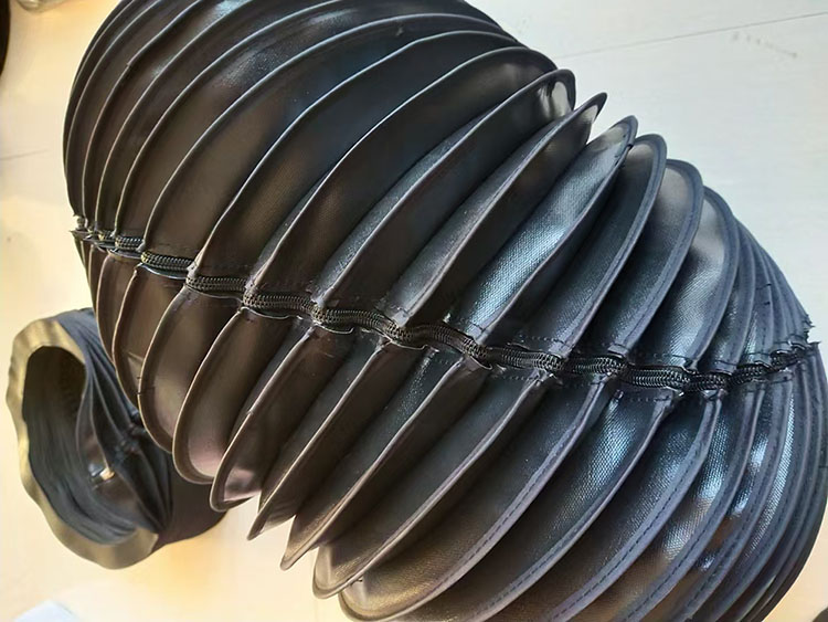 Especially suitable for protecting small particles, it can also bear the weight generated by the particles. The circular stitched protective cover can be used horizontally or vertically. When used horizontally, it is recommended to use a plastic or aluminum support ring to maintain a certain uniform distance between the skin chamber and the screw rod, thereby extending its service life. When the elongation length is large, a metal ring can be added at each fold to enhance the stability of the skin chamber. The connecting or fixing end is usually equipped with a metal flange, or a sleeve clamp can be chosen. Additionally, we can also provide side-opening models, which can avoid the inconvenience of disassembling and installing for customers, more effectively improving production efficiency and saving labor and materials, thus gaining the favor of an increasing number of users.