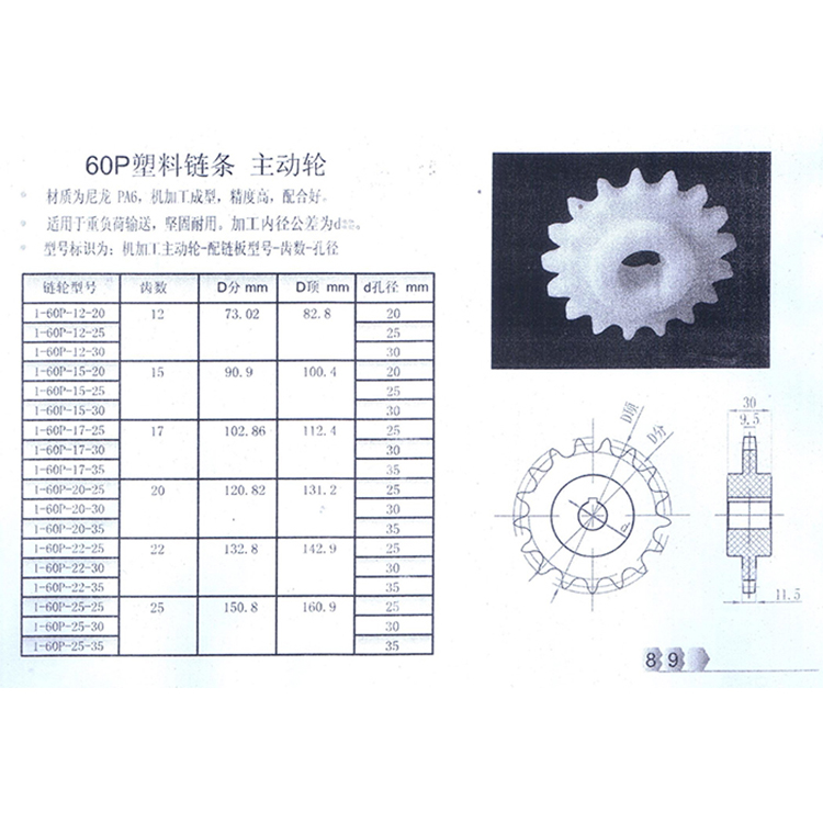 60P Plastic Chain, Drive Wheel