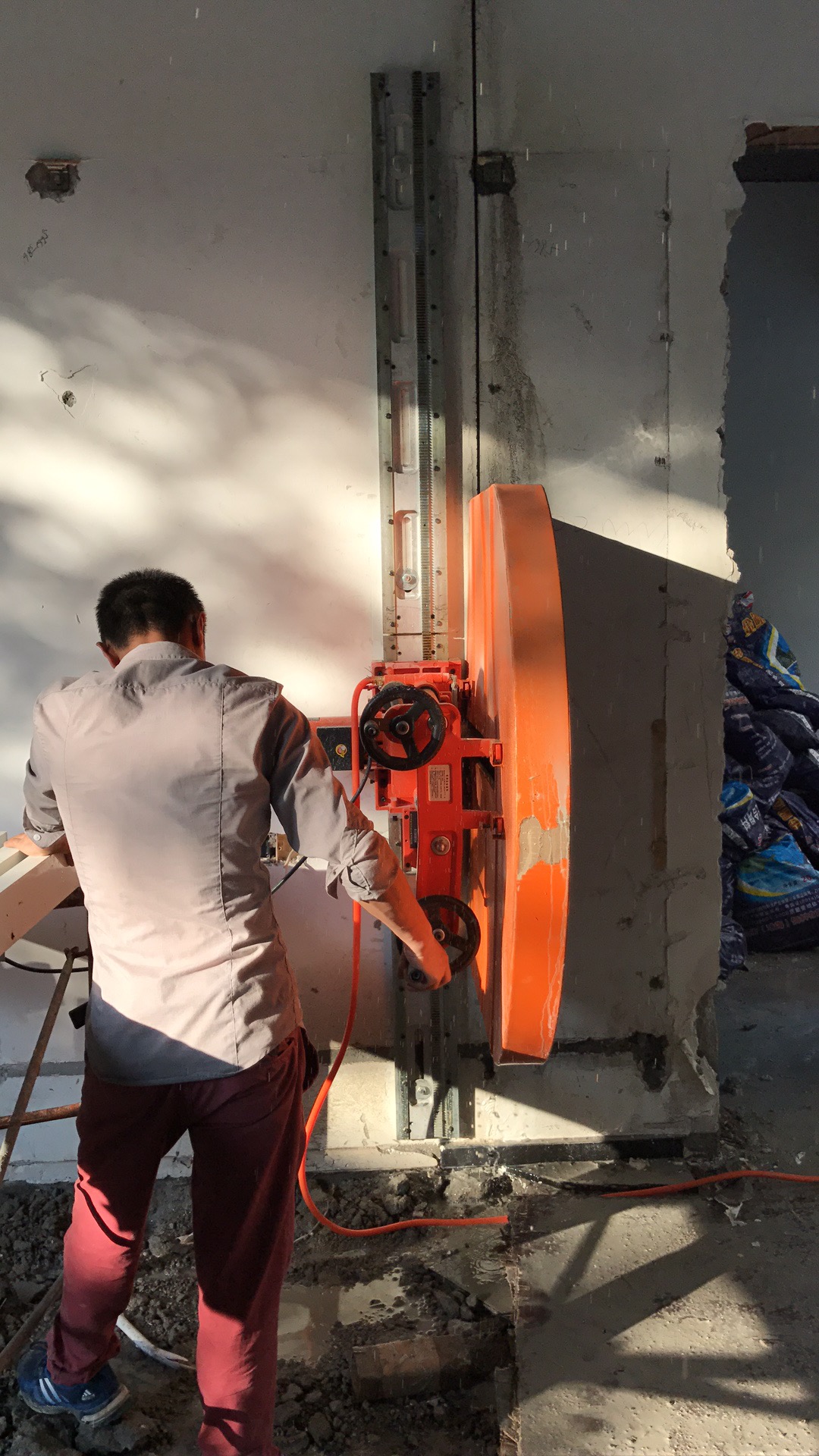Wall cutting machines are primarily used for building renovations, reinforcement, and design changes, capable of cutting large areas of walls such as door openings, windows, and elevator shafts. Manual feeding and cutting. The structure remains damage-free and forms in one go, not only avoiding the damage to the building structure caused by traditional hammering construction methods but also saving time and resources on drilling circular排孔, as well as substantial time and cost for adjustments.