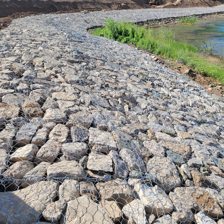 Galvanized gabion mesh, also known as hot-dip galvanized gabion mesh, is a type of gabion. Galvanized gabion mesh refers to the woven mesh made from high-strength, corrosion-resistant, and abrasion-resistant low-carbon steel wire with a thick galvanized coating or aluminum-zinc alloy wire (or homogenous coated steel wire). The wire surface treatment of the gabion mesh produced by our factory is hot-dip galvanized, hence the name "galvanized gabion mesh." This gabion mesh features anti-rust, anti-static, anti-aging, corrosion resistance, high compressive strength, and high shear resistance.