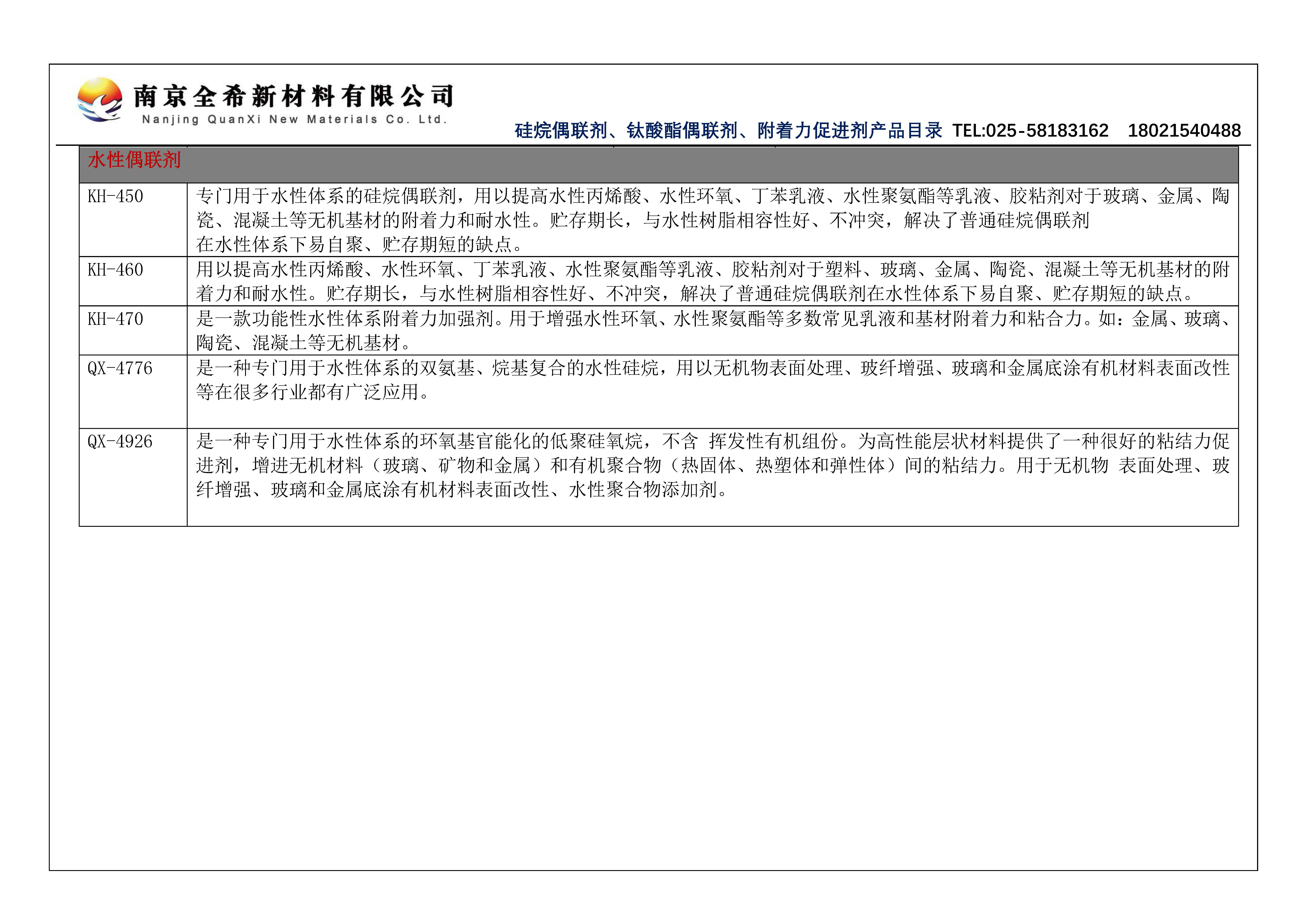 Nanjing Quanxi New Material Co., Ltd.Published byWater-based Silicone Coupling Agent Product CatalogGallery Lib