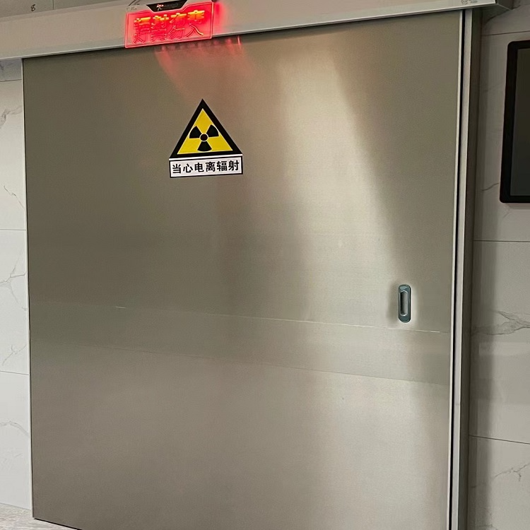 The motor of the radiation protection door is a variable-frequency motor. The electrically operated protection door features a three-in-one interlock system of electric, manual, and remote control. The inductive device allows for manual opening and closing of the door leaf, as well as remote control switching. In the event of a power outage, upon restoration, the electric door automatically closes, effectively serving as a theft deterrent.