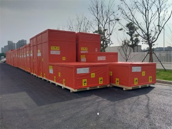 Logistics TransportationDuring the long-distance transportation of goods, a rain cover on the wooden crates effectively protects the contents from rainfall, especially during outdoor transport, ensuring the safety of the items inside the crates.