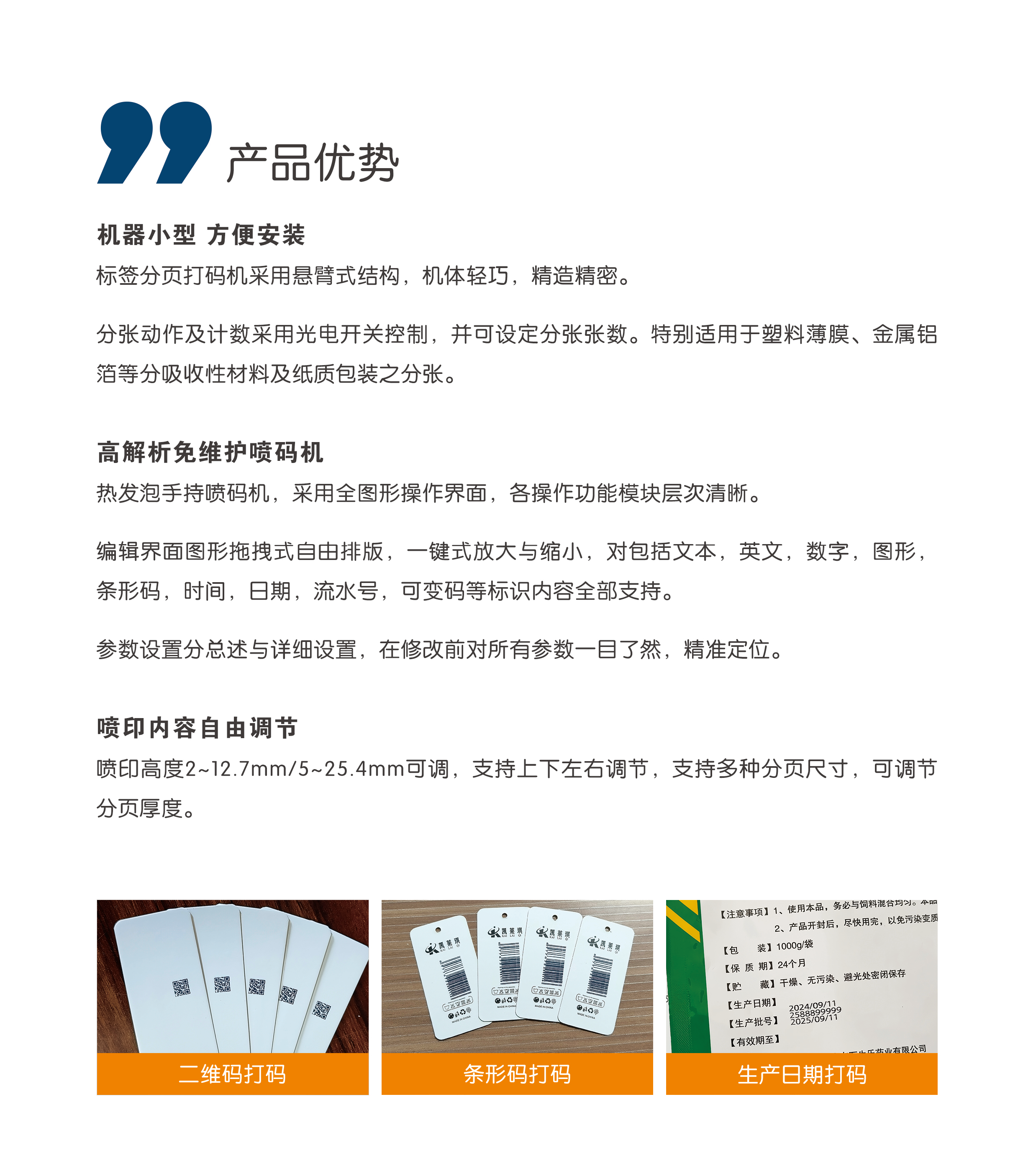 | Font Selection | Simplified Chinese, Traditional Chinese, numerals, Chinese characters, graphics (LOGO), barcodes, QR codes, etc. | |