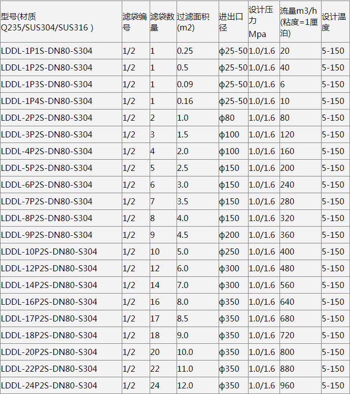 Note: Flow rate is a reference value for water treatment, and the actual flow rate may vary due to factors such as fluid viscosity, filtration accuracy, impurity content, and pressure difference.