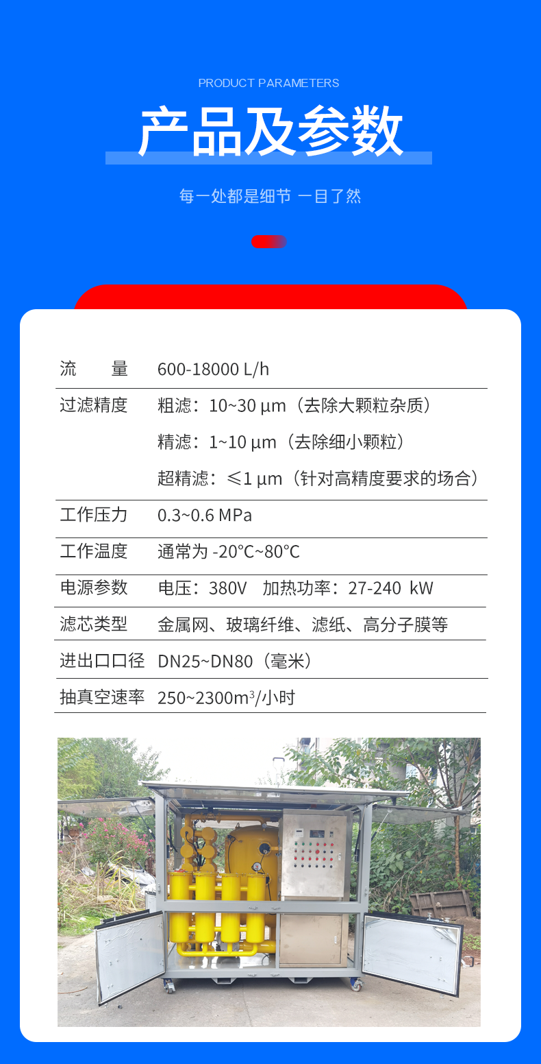 | Application Scope | Transformer oil impurity filtration | |