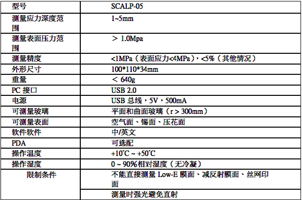 This instrument employs dynamic laser polarized scattering method to measure the stress state of glass through polarized laser technology, high-speed image capture technology, and digital polarimeter technology. It is capable of measuring both surface stress and stress distribution in the thickness direction of the glass. The instrument boasts compactness, portability, fast measurement speed, and automatic measurement capabilities, allowing for on-site measurements when connected to a laptop or tablet computer. It is suitable for flat glass, photovoltaic glass, and automotive glass with float glass or rolled glass as the base material. It effectively measures the surface and internal stress distribution of solar cell textured cover glass, and is particularly well-suited for building facade glass and window glass that have already been installed on walls.