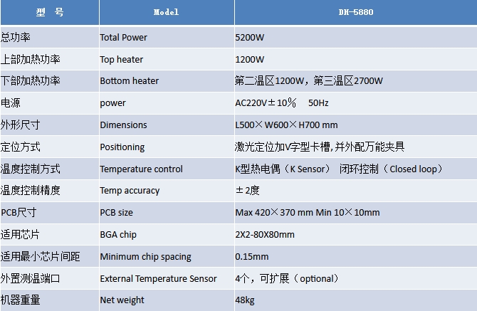 Section 2: BGA Rework Station DH-5880 Product Specifications