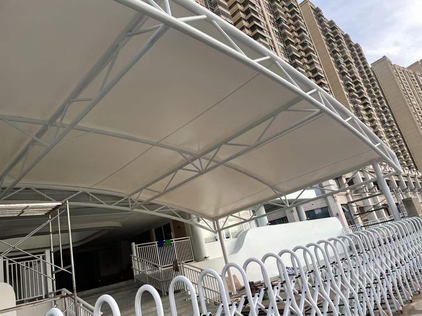 Our company's membrane structure buildings are uniquely designed, highly artistic, and exude a strong modern vibe. They are widely used in sports venues, highway toll stations, gas stations, large parking lots, exhibition halls at trade shows, public spaces, leisure areas, and scenic area decorations.