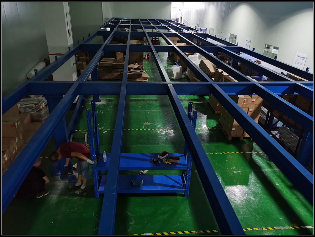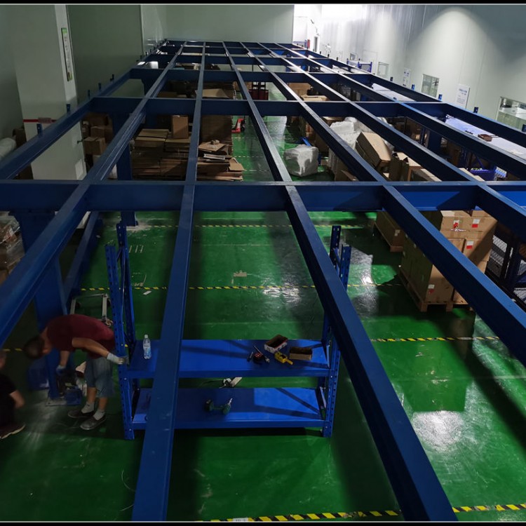 | Mezzanine racking is a simple shelving system that maximizes the use of upper warehouse space. Construct a mezzanine between existing racks or workstations to increase storage area. The floor of the mezzanine is typically used for lightweight items, small to medium-sized goods, or goods with a long storage period. Forklifts, conveyors, hoists, electric cranes, or lifting platforms can be used to elevate goods. Operations on the mezzanine usually involve lightweight trolleys or tray trolleys. Features of mezzanine racking: 1. Fully assembled structure, easy to combine, install, and dismantle. 2. Optimized cross-sections of columns, main beams, and auxiliary beams for strong load-bearing capacity. 3. Electrostatic powder coating for a beautiful appearance. 4. Can be flexibly designed into a two-story or multi-story mezzanine based on actual site requirements. Suitable for storing a variety of goods in small batches, making full use of space. 5. The lower level is in the form of shelves, while the upper level can be either a platform or a shelving structure. The lower shelves can store materials and also support the floor, offering great flexibility. |