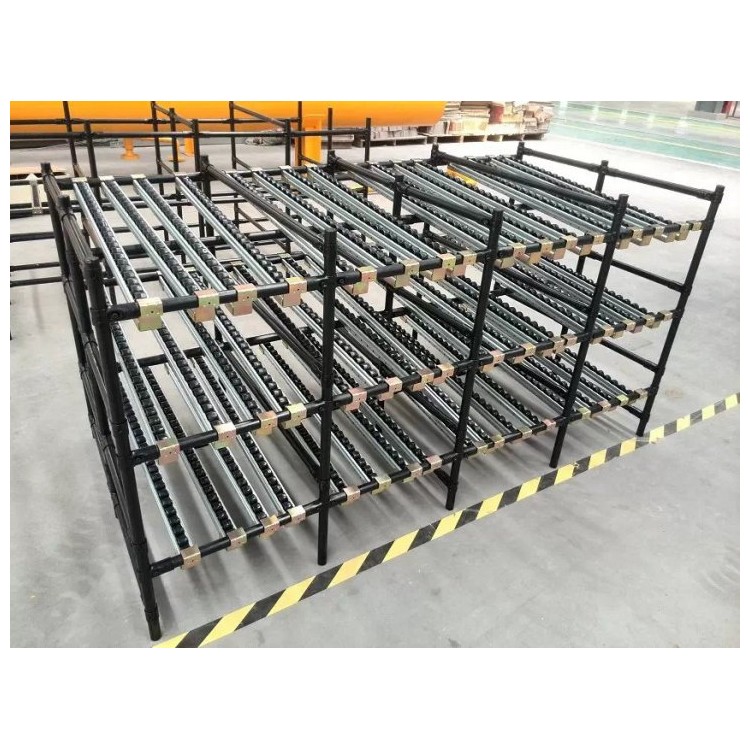 | The Flow Rack is equivalent to the gravity flow rack, commonly evolved from medium-sized beam racks. It transports goods from the picking end to the delivery end through channels, with goods sliding down automatically under gravity, enabling "first in, first out" operation. It is cost-effective, with fast storage speed and high density. Typically used in lean production processes in enterprises. Characteristics of the Flow Rack: 1. Equipped with roller-type aluminum alloy or other flow strips, utilizing the weight of the goods for "first in, first out" operation. 2. Easy to store and retrieve, suitable for assembly line sides, distribution centers, and similar locations. 3. Ideal for storing large quantities of similar goods, with high space utilization, particularly suitable for auto parts factories. 4. Compatible with electronic labels for information management of goods. |