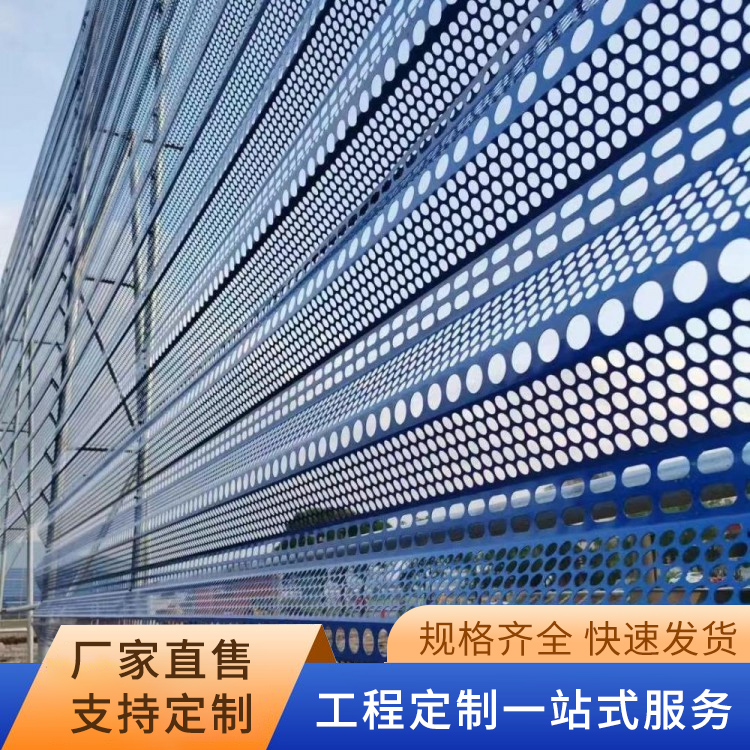 Windproof and dust suppression net is processed into a certain geometric shape, opening rate, and different hole shape combinations based on wind tunnel test results in the implementation site environment, utilizing aerodynamic principles. It creates an air flow interference pattern inside the wall when the flowing air (strong wind) passes through the wall, achieving the effect of strong wind on the outside, weak wind on the inside, small wind on the outside, and no wind on the inside, thereby preventing dust from flying.