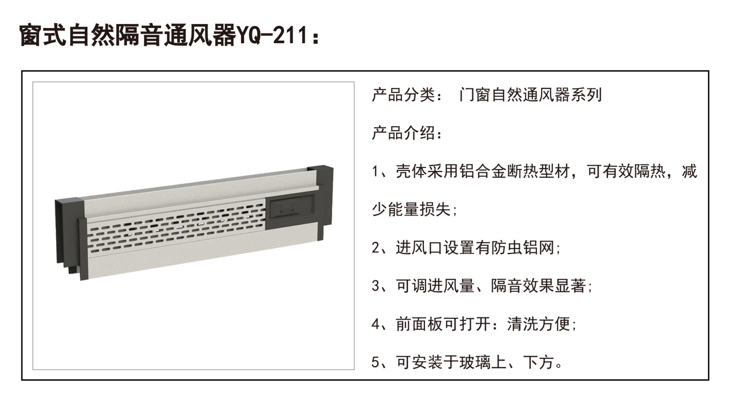 Shandong Yuqiang Hardware Products Co., Ltd.Published byWindow Type Natural Soundproofing and Ventilator YQ-211Gallery Lib